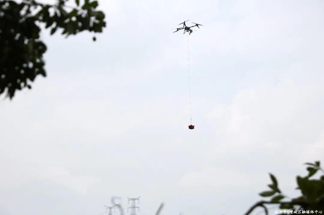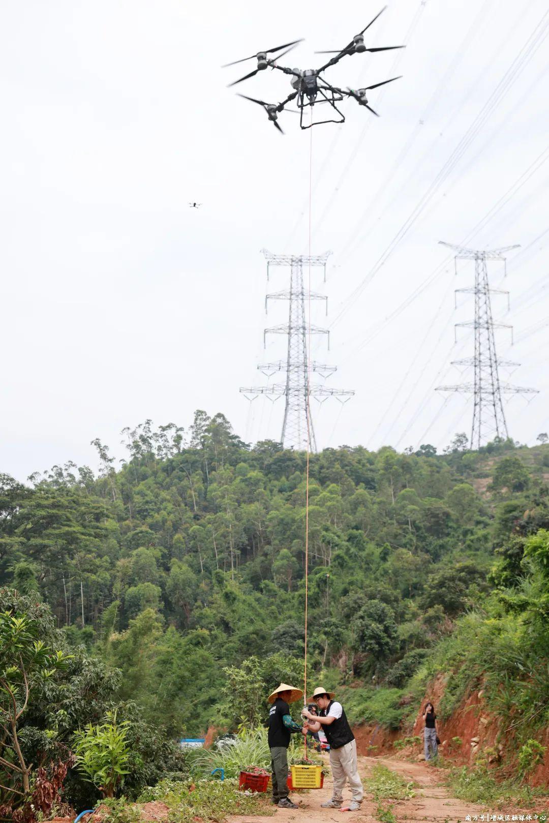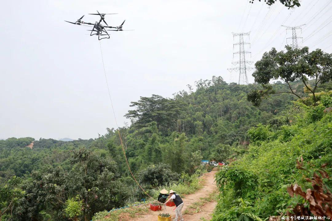 与往年不同的是,今年一箱箱荔枝不再依赖人工搬运,而是搭上无人机“空中快线”,从山头果园直飞山下运输点,全程仅需3分钟。这一低空经济新模式,为山地荔枝运输提供了创新解决方案。