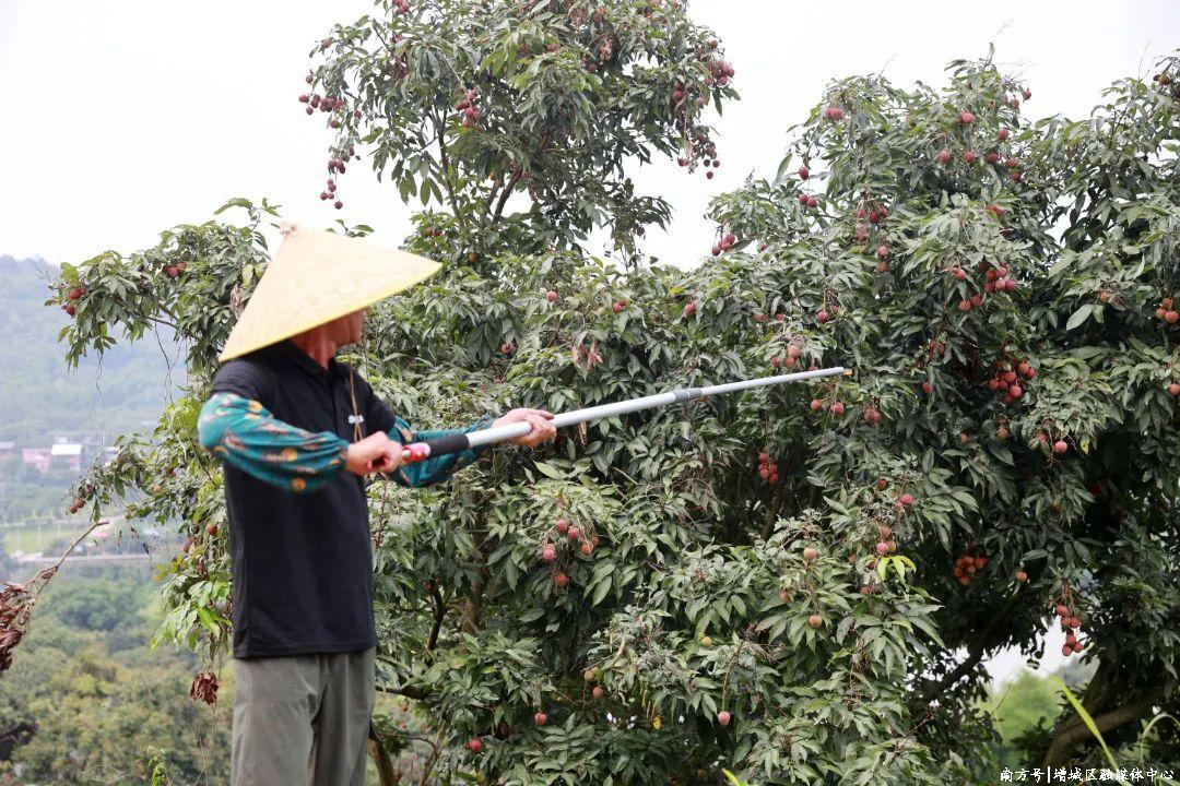 眼下正值荔枝采收旺季,6月6日,在广州市增城区仙村镇仙庄农场,果农胡华耀正忙着采摘新鲜的妃子笑荔枝。